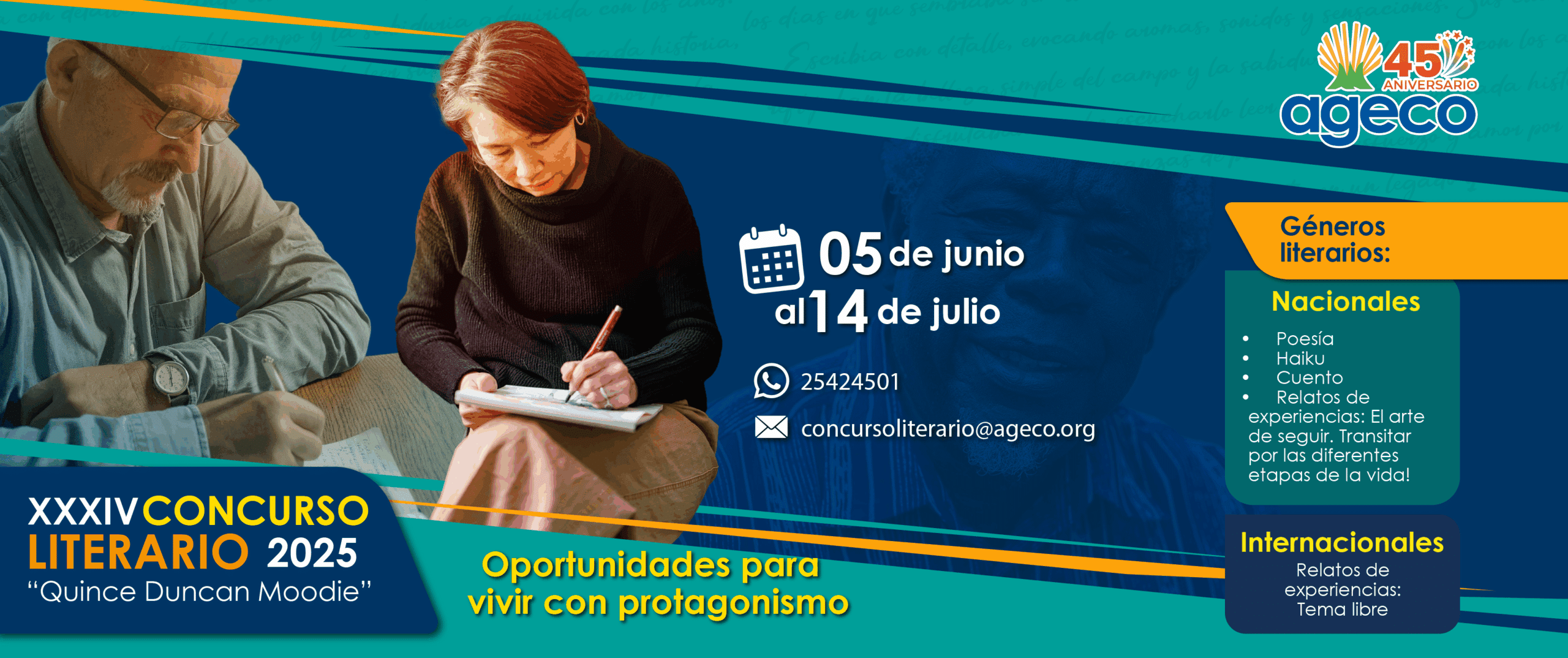 XXXIV Concurso Literario de Personas Mayores 2025- “Quince Duncan Moodie”. Bases del Concurso GÉNEROS LITERARIOS Primero Para personas nacionales los géneros literarios para participar en el concurso son: Cuento...