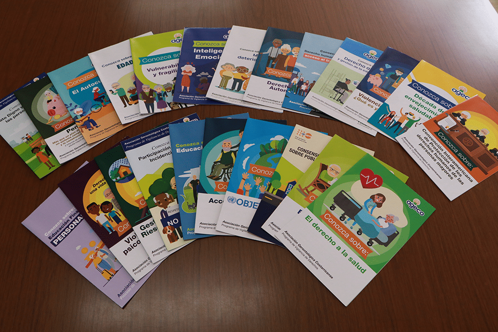 En el enlace digital: https://ageco-derechospersonasmayores.org/ las personas encuentran todas las regulaciones nacionales e internacionales relacionadas con temas de la población mayor. Además, pueden obtener detalles sobre el Servicio de Orientación Socio Legal de AGECO, boletines informativos con temas de interés tales como pensiones, acceso digital, violencia, trabajo, entre otros. También cuenta con infografías en temas de actualidad para promover el bienestar en la población mayor y es posible efectuar ejercicios de autoevaluación digital como lo son el violentómetro (para identificar si las personas están enfrentando situaciones de violencia); y el edadímetro (permite conocer la percepción que se tiene sobre el envejecimiento y la vejez).